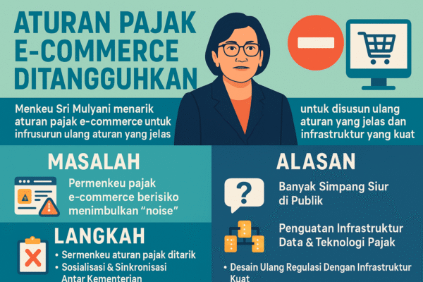 Jakarta, 27 Juni 2025 – Menteri Keuangan Sri Mulyani Indrawati secara resmi menarik aturan pajak e‑commerce yang semula akan dipungut melalui platform marketplace. Penarikan ini didasari kebutuhan memperjelas regulasi dan memperkuat infrastruktur administrasi sebelum penerapan baru efektif berlaku. Regulasi revisi diperkirakan akan diluncurkan kembali pada Juli mendatang.