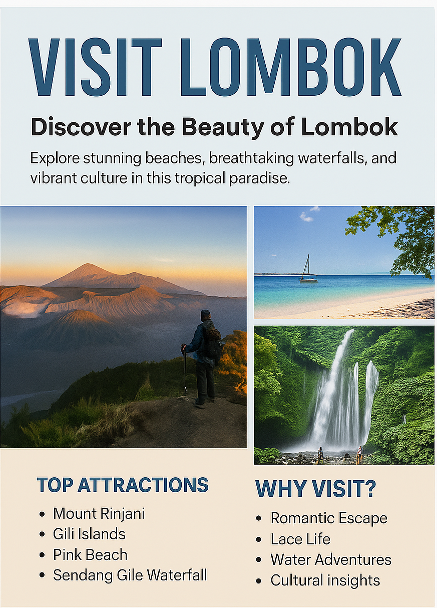 Lombok adalah permata tersembunyi Indonesia, menawarkan keindahan alam yang menakjubkan, pantai berpasir putih yang masih alami, gunung berapi megah, dan budaya lokal yang kaya. Dari petualangan mendaki Gunung Rinjani hingga bersantai di pasir merah muda Pantai Pink, setiap sudut Lombok menyimpan pengalaman yang tak terlupakan.