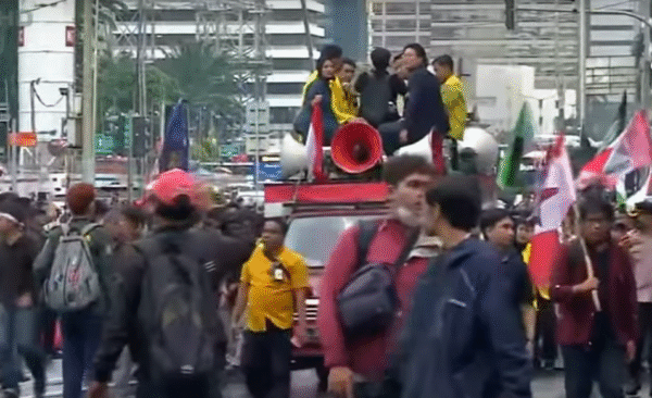 “Kami hadir bukan untuk membuat kekacauan, tapi untuk menyampaikan suara rakyat yang cemas akan masa depan bangsa,” ujar salah satu orator dari atas mobil komando.