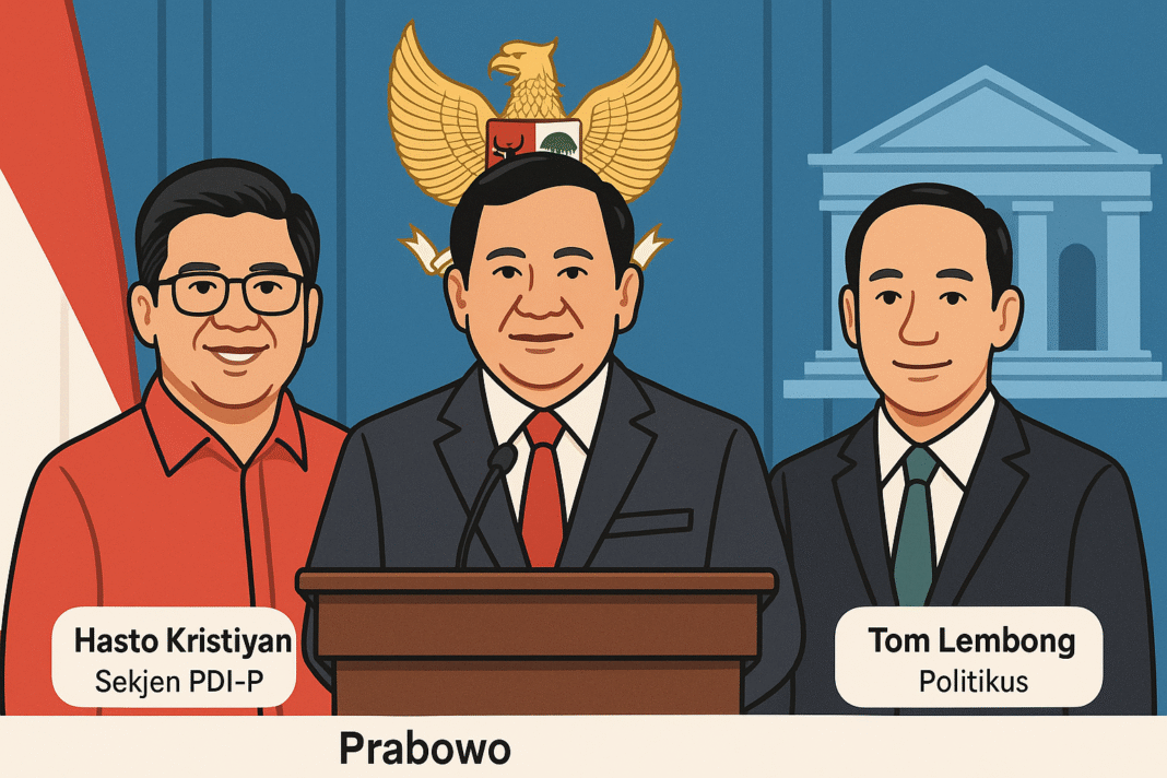 Jakarta, 31 Juli 2025 – Presiden Republik Indonesia Prabowo Subianto resmi memberikan abolisi kepada mantan Menteri Perdagangan Thomas Lembong, serta amnesti kepada Sekretaris Jenderal PDI Perjuangan Hasto Kristiyanto. Keputusan ini telah disetujui oleh Dewan Perwakilan Rakyat Republik Indonesia (DPR RI) dan diumumkan secara resmi oleh Istana Negara menjelang peringatan Hari Kemerdekaan ke-80 Republik Indonesia.