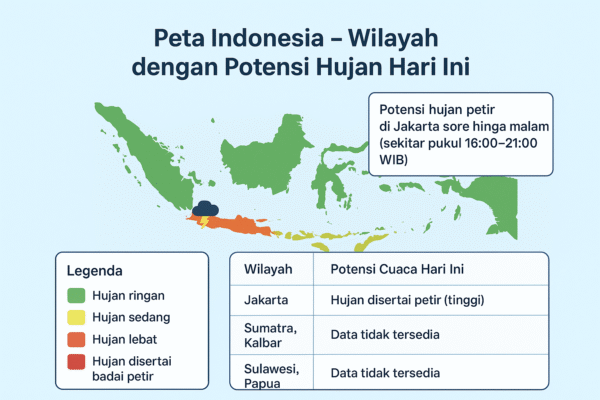 Jakarta, 25 Agustus 2025 – Sebagian besar wilayah Indonesia hari ini kembali diguyur hujan ringan dengan langit berawan tebal, kondisi yang tidak lazim untuk periode kemarau. Fenomena ini disebut sebagai kemarau basah, yang oleh peneliti klimatologi Badan Riset dan Inovasi Nasional (BRIN), Edvin Aldrian, dipicu oleh anomali iklim regional.