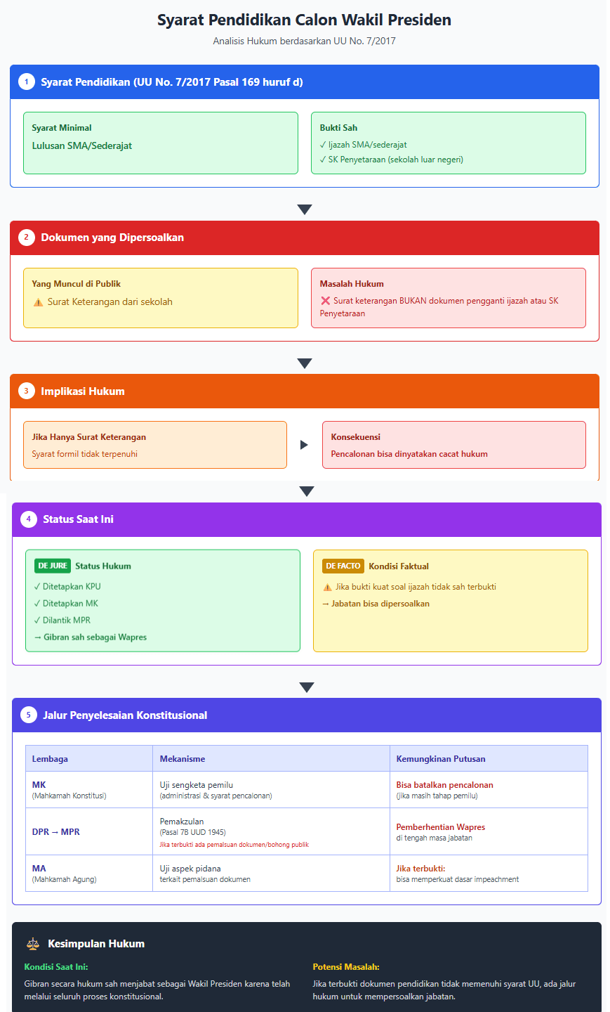 | Implikasi hukum | Jika dikategorikan tidak sah → bisa menggugurkan kepantasan sebagai wapres |