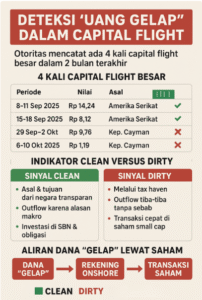 Dalam dua bulan terakhir, tercatat dua kali capital flight besar dengan nominal di atas Rp1 triliun. BI menyebut hal ini sebagai bagian dari “dinamika portofolio global,” namun pengamat menilai perlu pengawasan lebih mendalam terhadap transaksi di bursa saham dan rekening efek luar negeri.